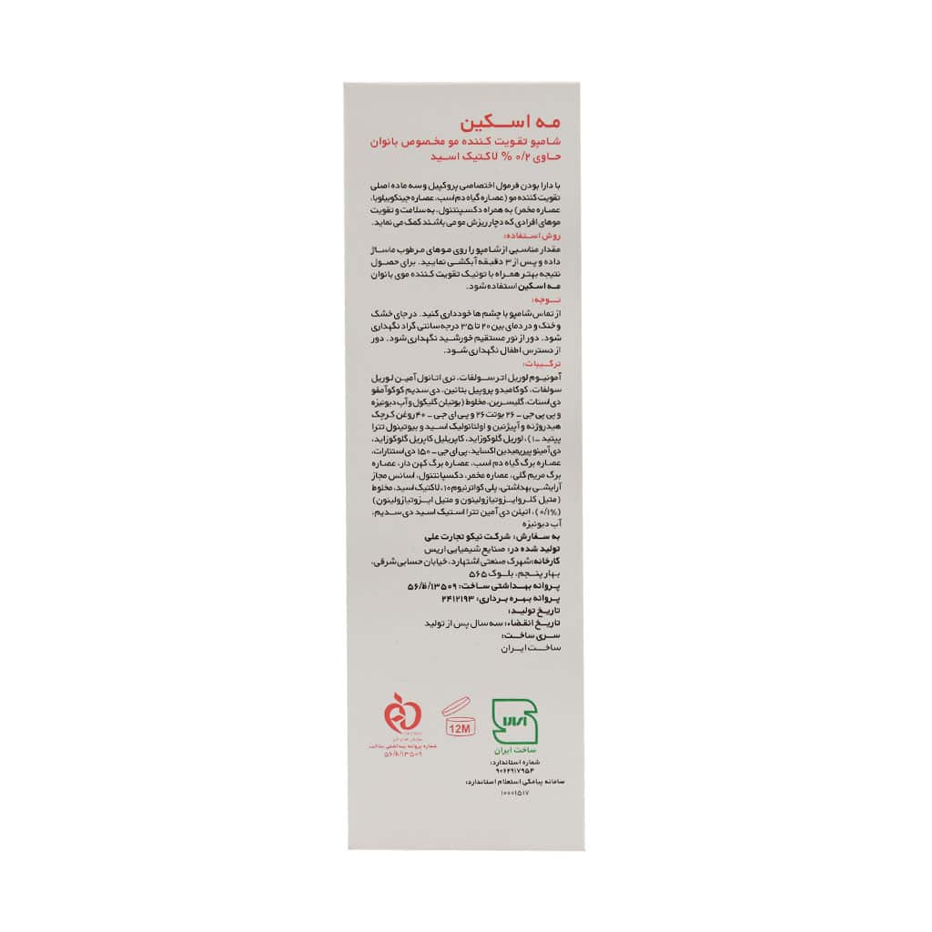 ویژگی های شامپو تقویت کننده و کنترل کننده ریزش موی بانوان مه اسکین